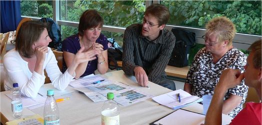 In Gruppenarbeit werden Schwimmabzeichen diskutiert, Materiallisten und anschauliche Baderegeln erstellt. |