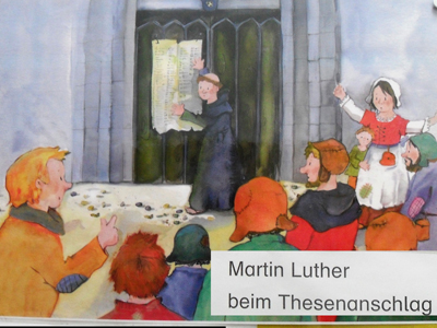 Wir haben in der Bücherei in der Bibel und in Büchern über Martin Luther gelesen.
