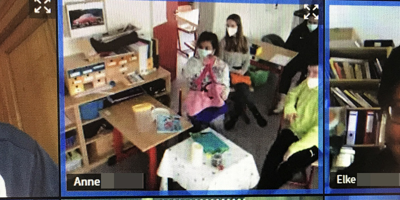 Es ist ja nur die halbe Klasse da. Aber wir können über die Videokonferenz mit allen feiern.