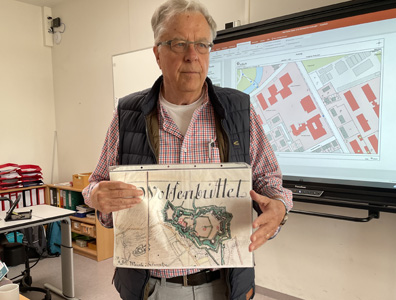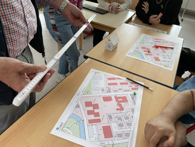 Dann haben wir einen Experten zu Besuch in der Schule gehabt. Dieter Kertscher ist Vermessungsingenieur. Er zeigte uns anschaulich, wie ein Stadtplan entsteht.