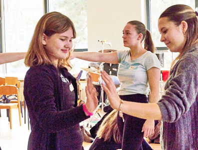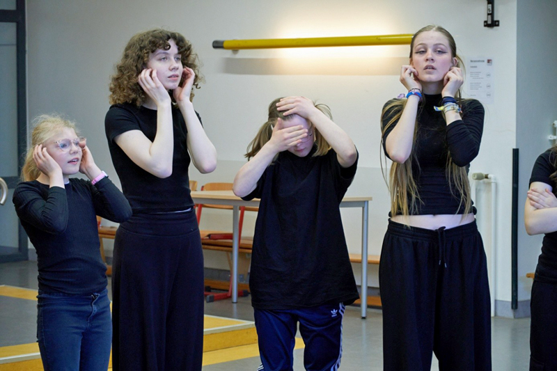 Die Aktivzeit Tanzen der Peter- Räuber- Schule und der Kurs Darstellendes Spiel (12. Jahrgang) des Gymnasiums im Schloss bewerben sich gemeinsam für das „Theaterfest der Länder“, welches Ende September 2025 in Braunschweig und Wolfenbüttel stattfindet. Die ersten Treffen der SchülerInnen waren bereits sehr produktiv. Alle sind mit Spaß und Eifer dabei. Mit viel Spielfreude wurden bereits kleine Szenen gemeinsam gespielt. Wir freuen uns sehr auf die weitere Zusammenarbeit!