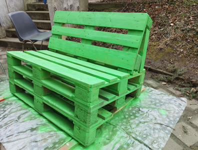 Die Holzwerkstatt der Schülerfirma hat ein paar Paletten geschenkt bekommen. Jaycee, Peter und Djafar haben sich daran gewagt etwas für die Schule daraus zu gestalten.